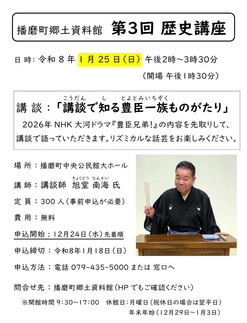 第3回歴史講座は、旭堂 南海(きょくどう なんかい)氏の講談をお楽しみください。
