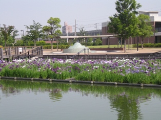 この公園は、「防災・環境・福祉」をテーマとして整備されており、園内パークセンターには災害時に備えた防災倉庫も設けられています。池の水面には水質浄化のための水生植物が植えられ、誰もが安心して利用できるよう、バリアフリー施設となっており、水辺の憩いの場として利用されています。